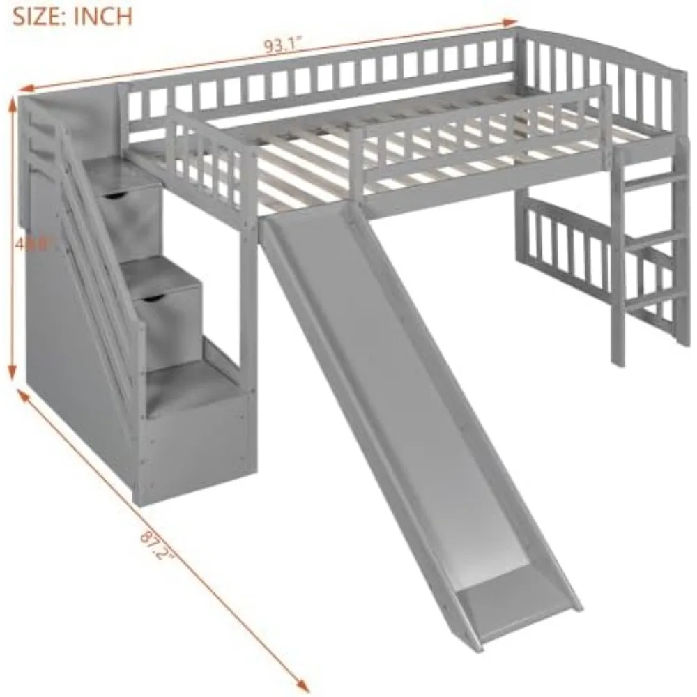 • 【Easy Assemble 】Overall loft bed dimensions : 94.3"L x 93.3"W x 48.8"H. Mattress not included. Some assembly is required, although we have provided clear instructions and tools.Kindly Note that loft bed with slide comes in 3 separate boxes ,May arrive on different dates . Please wait patiently or contact us freely if you only receive some part of them.