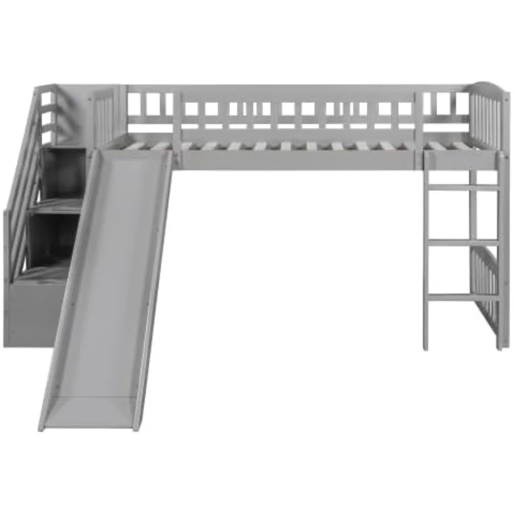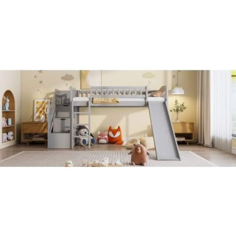 Hign-concerned Chemical:None Installation Method:Assembly Origin:US(Origin) With Storage:No Width(Mattress Size):1000mm Product Dimensions:931L x 872W x 488H Special Feature:Slide and Ladder Storage Stairs Color:Grey With Slide Finish Type:Painted Material:PlywoodMDFPinewood Style:Modern Maximum Weight Recommendation:250 Pounds Furniture Finish:Grey