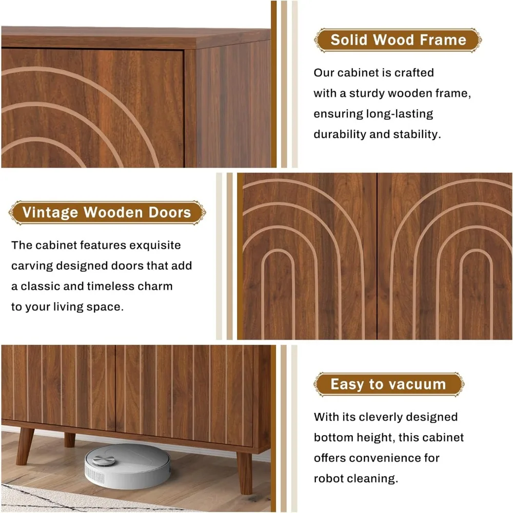 • High-Quality Craftsmanship: The Walnut Weselon Accent Cabinet with Carving Lines adds a sophisticated touch to any room, ensuring this console cabinet stands out in any setting. Making it a perfect decorative storage cabinet for your bedroom, living room, kitchen, office, or hallway