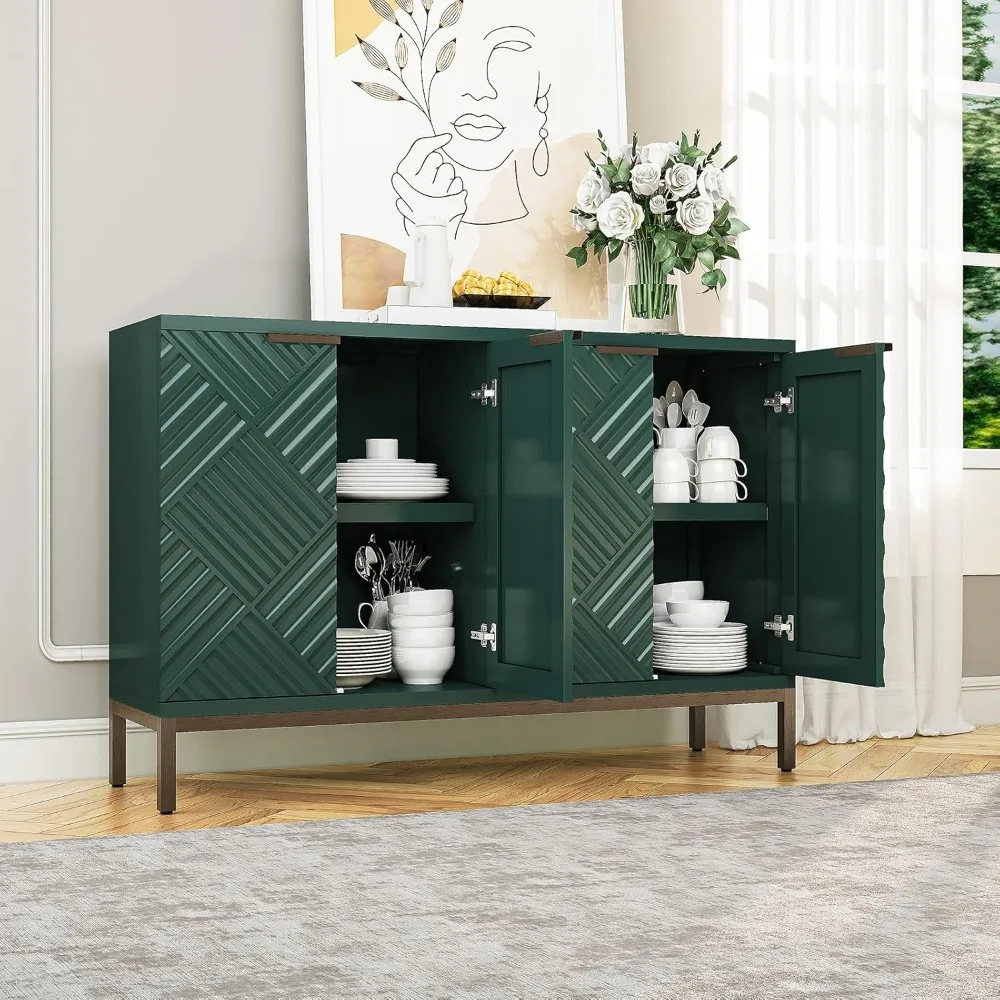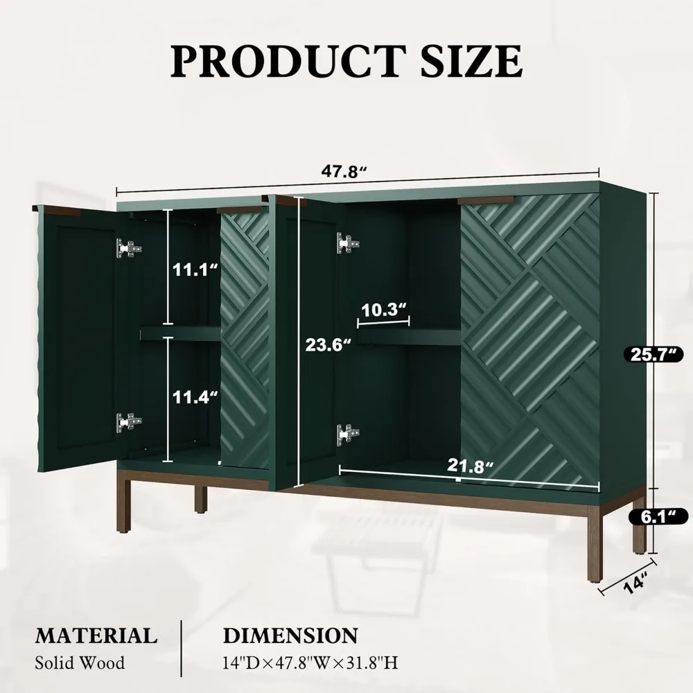 Green Modern Credenza Storage Accent Cabinet with Bronze Metal Legs for Dinin